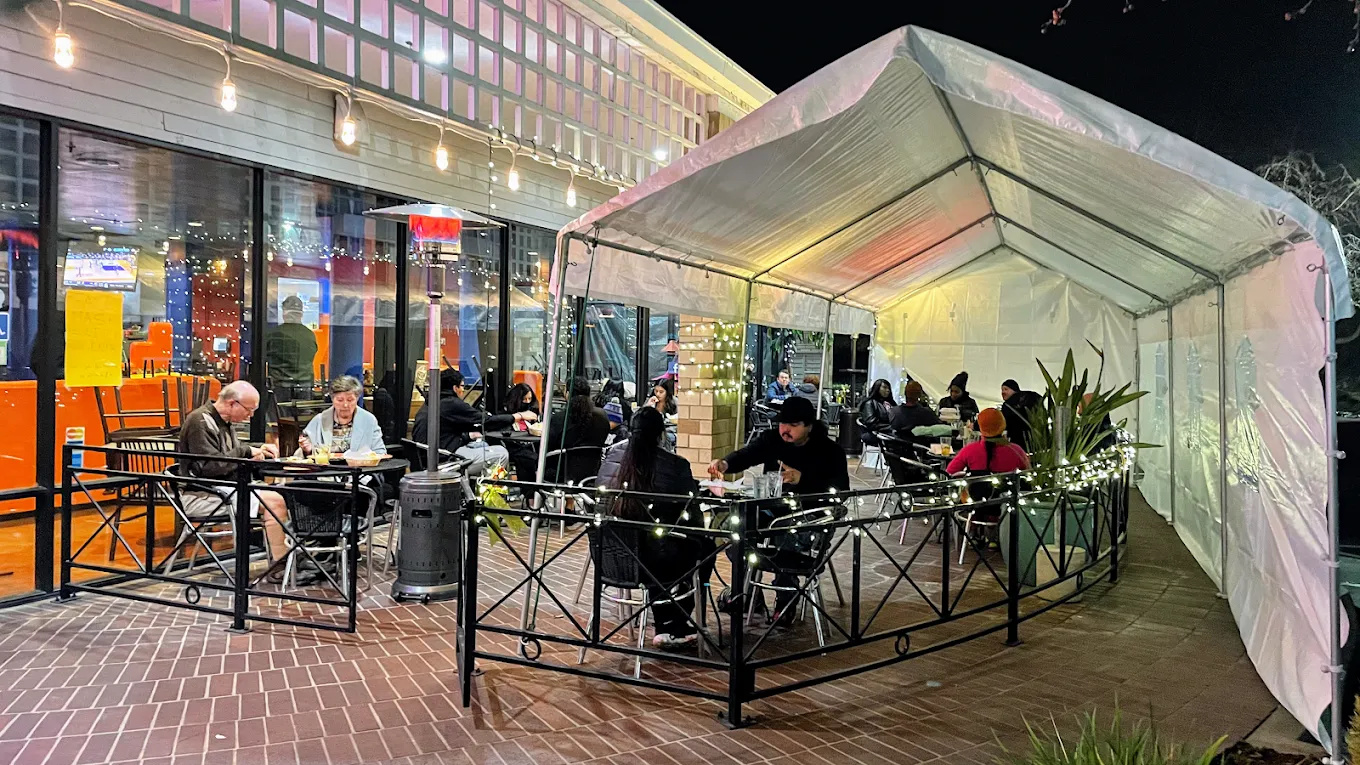 Relax in our vibrant dining room or enjoy the fresh breeze on our patio tables.